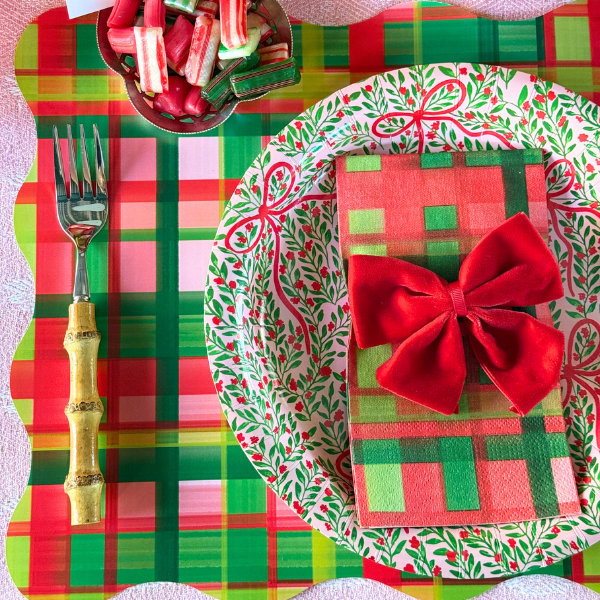 - 24 Holiday Plaid Scalloped Rectangle Paper Placemats