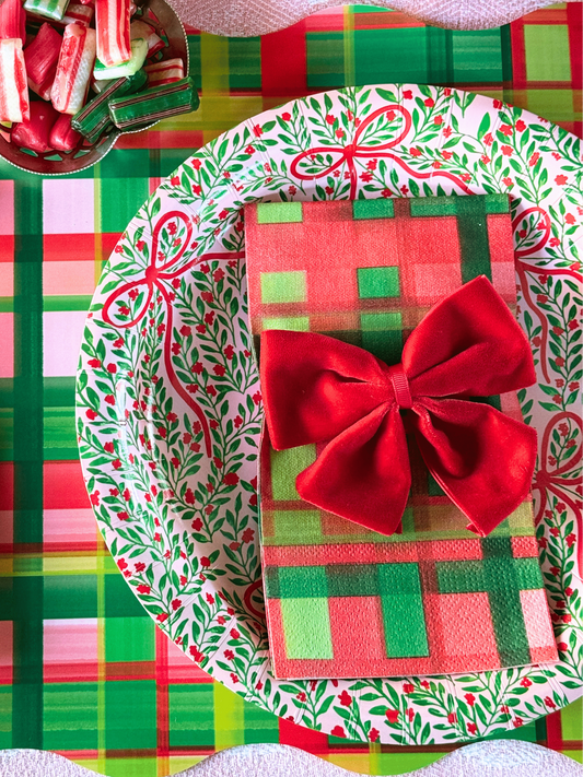 Holiday Plaid Linen-feel Paper Dinner Napkins / Guest Towels