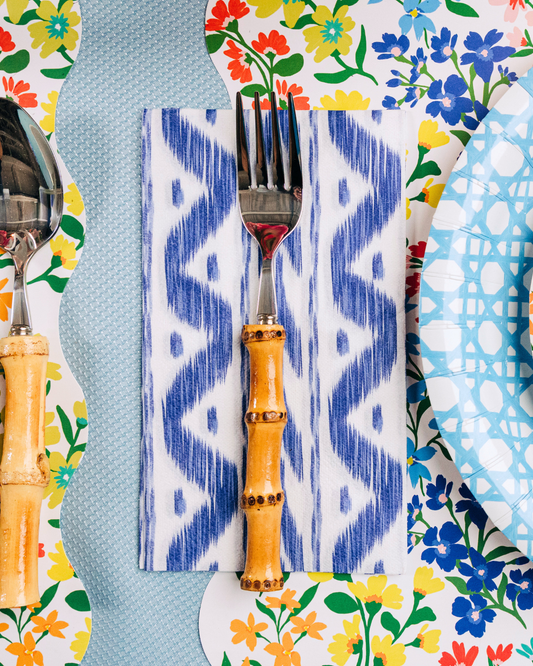 Blue Ikat Paper Dinner Napkins / Guest Towels
