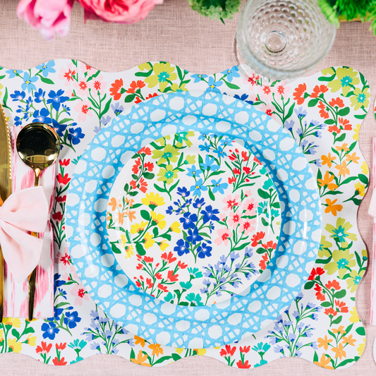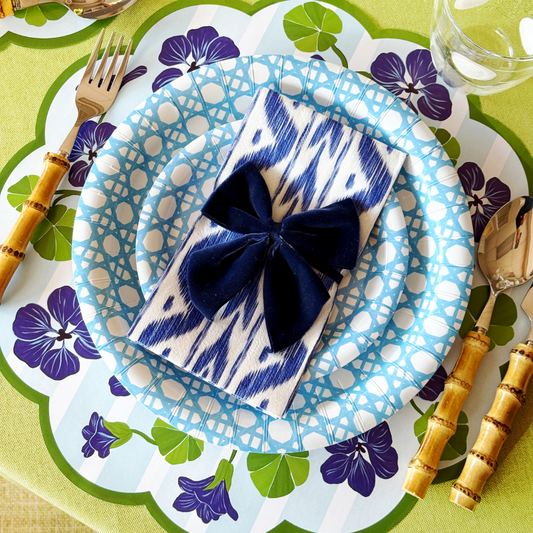 10" Blue Cane and 7" Full Bloom Premium Paper Plate Bundle