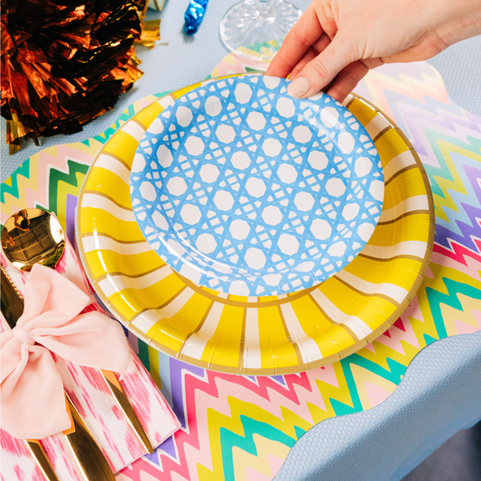 10" Yellow and 7" Blue Cane Premium Paper Plate Bundle