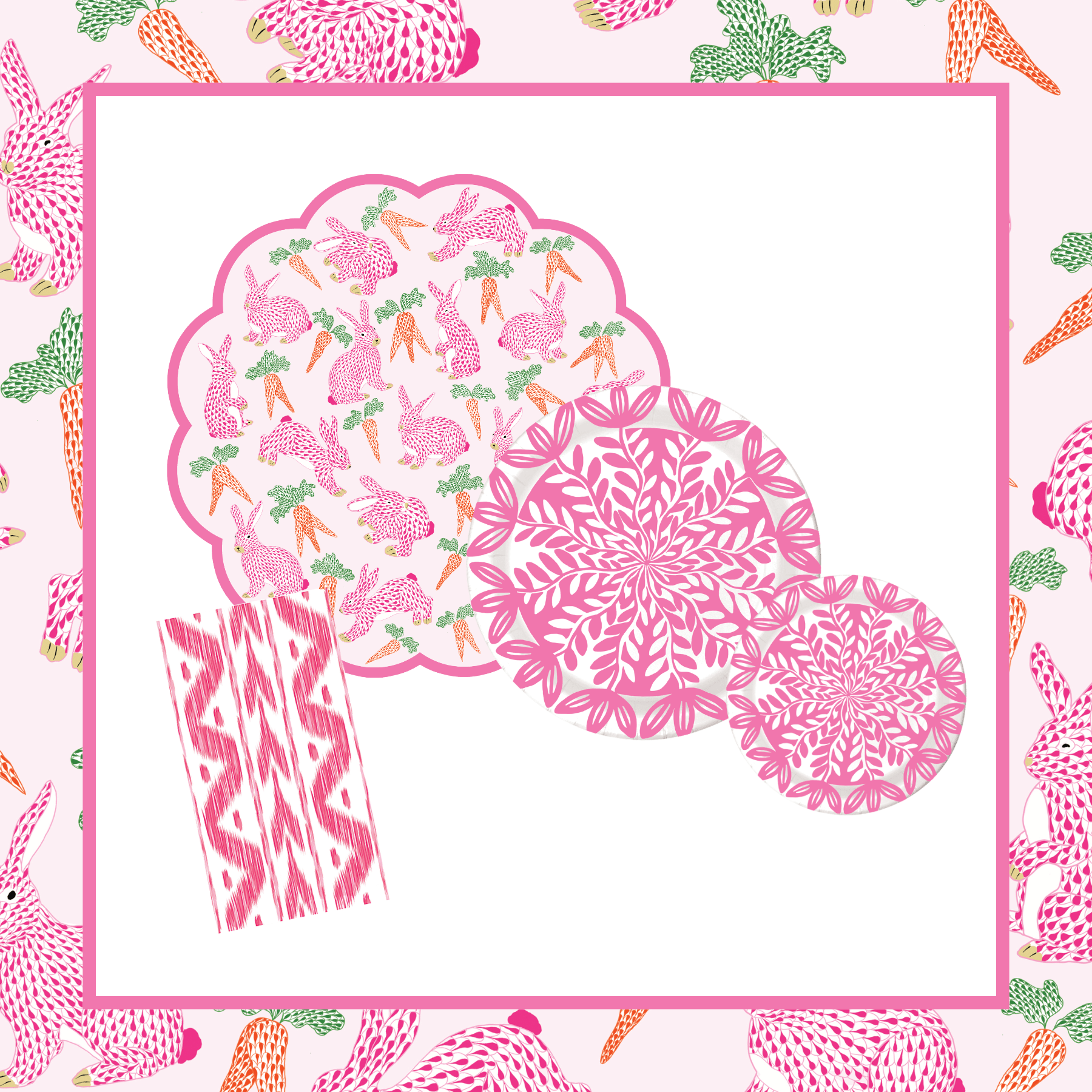 Sweet, scalloped, and spring-ready. Inspired by timeless charm, this tabletop bundle is ideal for Easter gatherings, spring brunches, and celebrations that call for soft pinks and playful detail — all with the ease of premium paper.