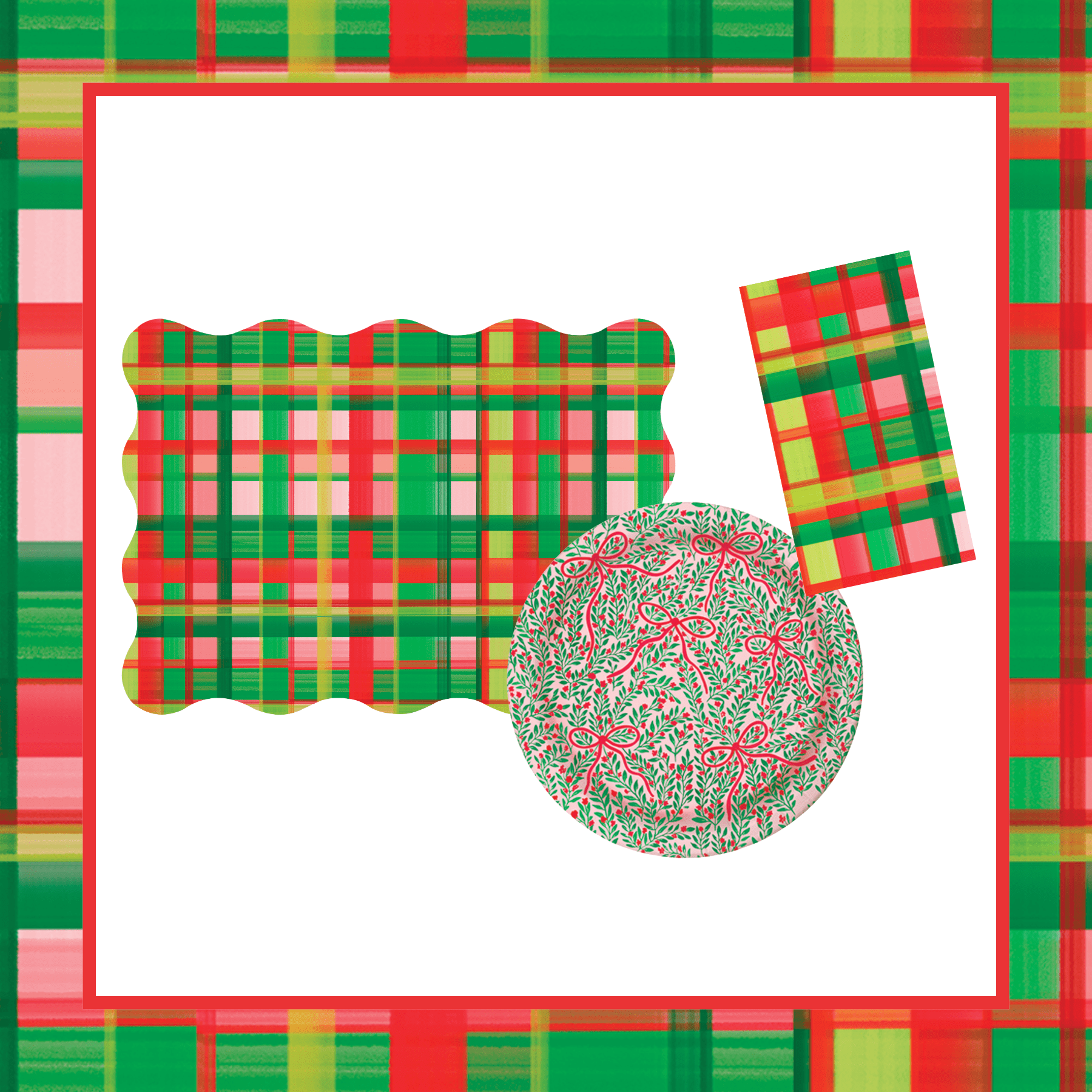 Holiday Plaid Table Bundle (Placemats + 10" Plates + Napkins)