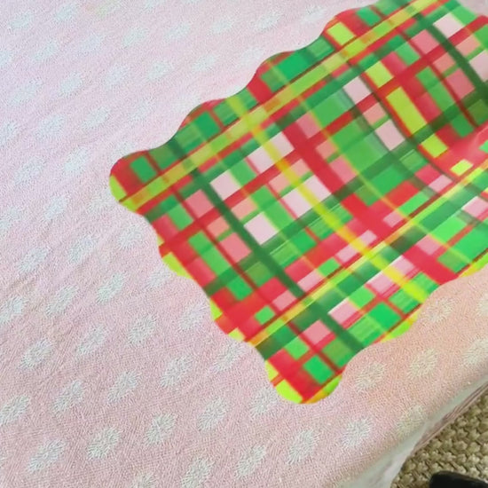 - 24 Holiday Plaid Scalloped Rectangle Paper Placemats