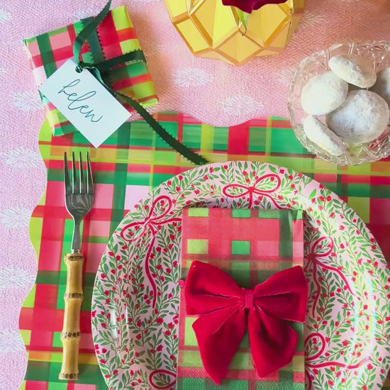 A holiday favorite that never goes out of style. Our Holiday Plaid Table Bundle brings the holiday cheer to your gatherings with classic plaid paper placemats, plates, napkins, and vase wraps that look festive and clean up easily.