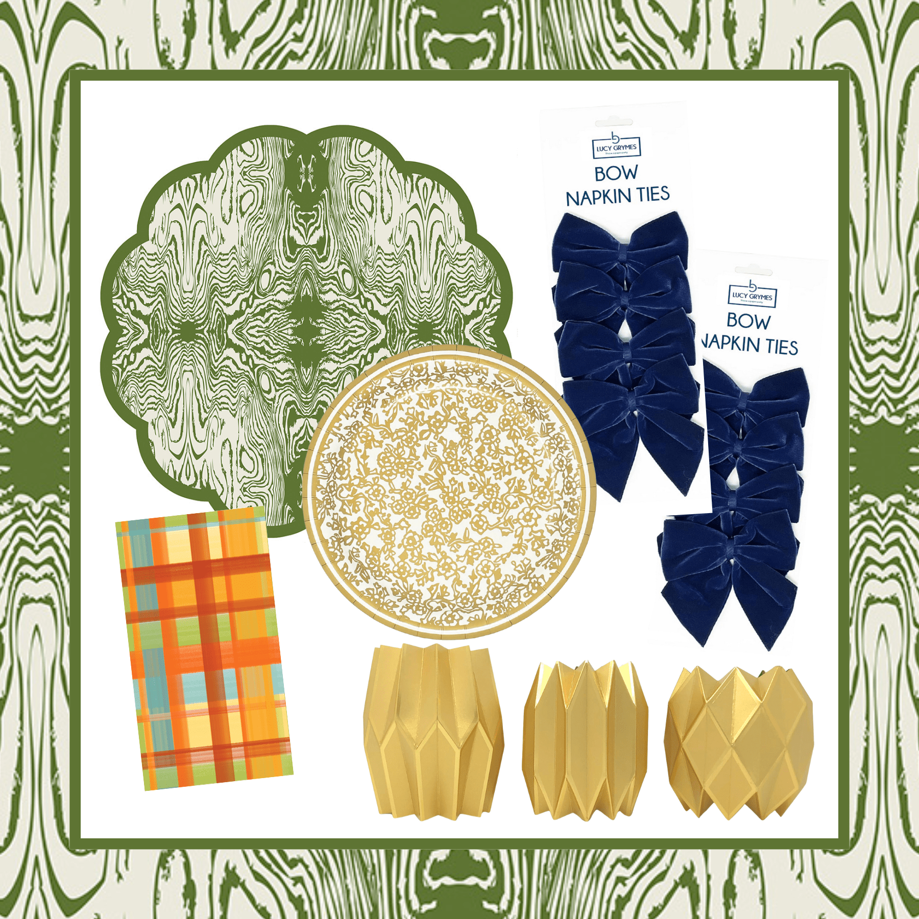 Set a warm and inviting fall tablescape with layered wood textures, gold accents, and cozy plaid napkins. Our Wood Full Table Bundle makes seasonal entertaining effortless and chic.
